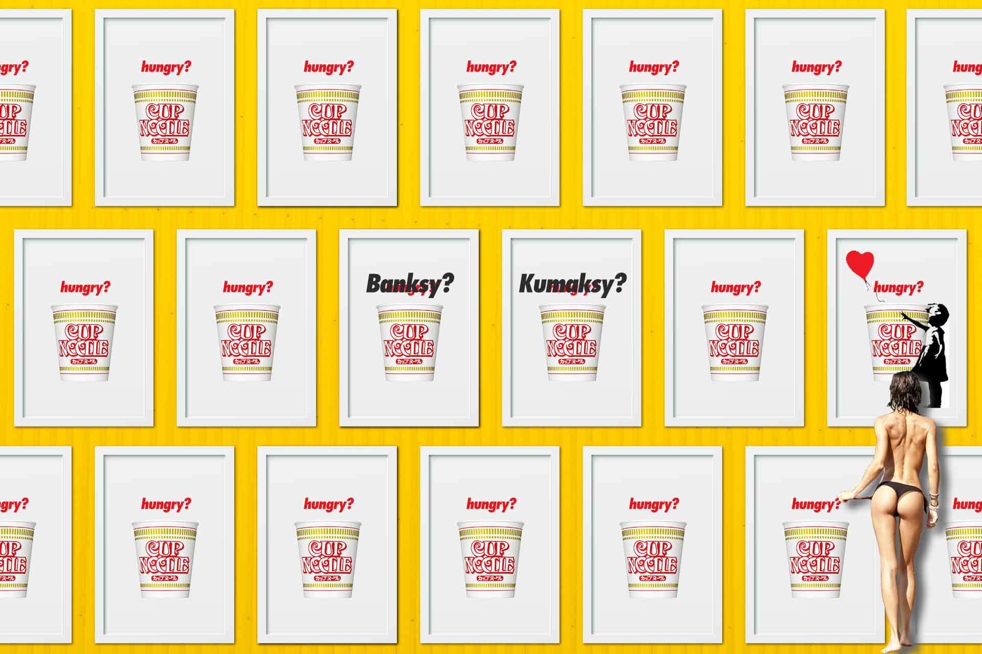 A doctor said Kumaksy "You had paranasal sinusitis."at February,07,2020. He started taking medicine. He had constipation and slight fever at February,8,2020. He guessed a side effect of medicine. He checked the meal which cures constipation on the Internet. He thought "Spaghetti,Campbell's soup,vegetable,seaweed,are good foods." He started eating "good foods" from February,8,2020. He got over sickness February,14,2020. He restart training street dance February,15,2020. He thought "I want going museum in Japan." He checked the museum on the Internet. He found the best museum "ANDY WARHOL KYOTO" He thought "Kyoto seems much away.I feel troublesome.but I want make graffiti like ANDY WARHOL" He flashed "CupNoodle!" He forgot an art museum for a while after that. He received a notification by Watanabe on Facebook Message February,18,2020. Watanabe is Kumaksy's friend in high school days. Watanabe said "I am planning to move to Hokkaido at April. Therefore I want eat meal with Kumaksy at Kuji." Kumaksy met Watanabe "BIJIYA(Nepal restaurant)" at Kuji March,11,2020. Kumaksy presented a Starbucks prepaid Card to Watanabe. Kumaksy found Watabe's posts on Face book "I want going Banksy Museum at YOKOHAMA" Kumaksy knew "Banksy" for the first time March,12,2020. Kumaksy went "WAAAPS at Tsurumi(STREET DANCE SCHOOL and DJ BAR)March,12,2020. Kumaksy asked Showrin(Orner of WAAAPS) "Do you know Banksy?" Showrin answered "I know Banksy of course. Banksy is very famous graffiti artist." Kumaksy asked Showrin "Do you know Banksy Museum in YOKOHAMA from March,12,2020 to September,27,2020?" Showrin answered "I don't know.Tell me Infomation" Kumaksy send to Showrin "Link of Banksy Museum web site" on the LINE. Kumaksy received message from Showrin March 26,2020. Showrin reported "I went"to Banksy Museum in YOKOHAMA.and tomorrow is last day under the influence of corona" Kumaksy shocked. Kumaksy went to Banksy Museum in YOKOHAMA(ASOBUILD) 17:00 March 27,2020. Kumaksy watched Banksy. and Kumaksy visited "PICH CLUB" Kumaksy maked CupNoodle poster March.29.2020. Kumaksy maked Video "Kumaksy watched Banksy" March.29.2020. Special thanks A.Watanabe(Ikuta),Showrin(WAAAPS),Aoyama(NIS),Tasaki(PICH CLUB)and Banksy.