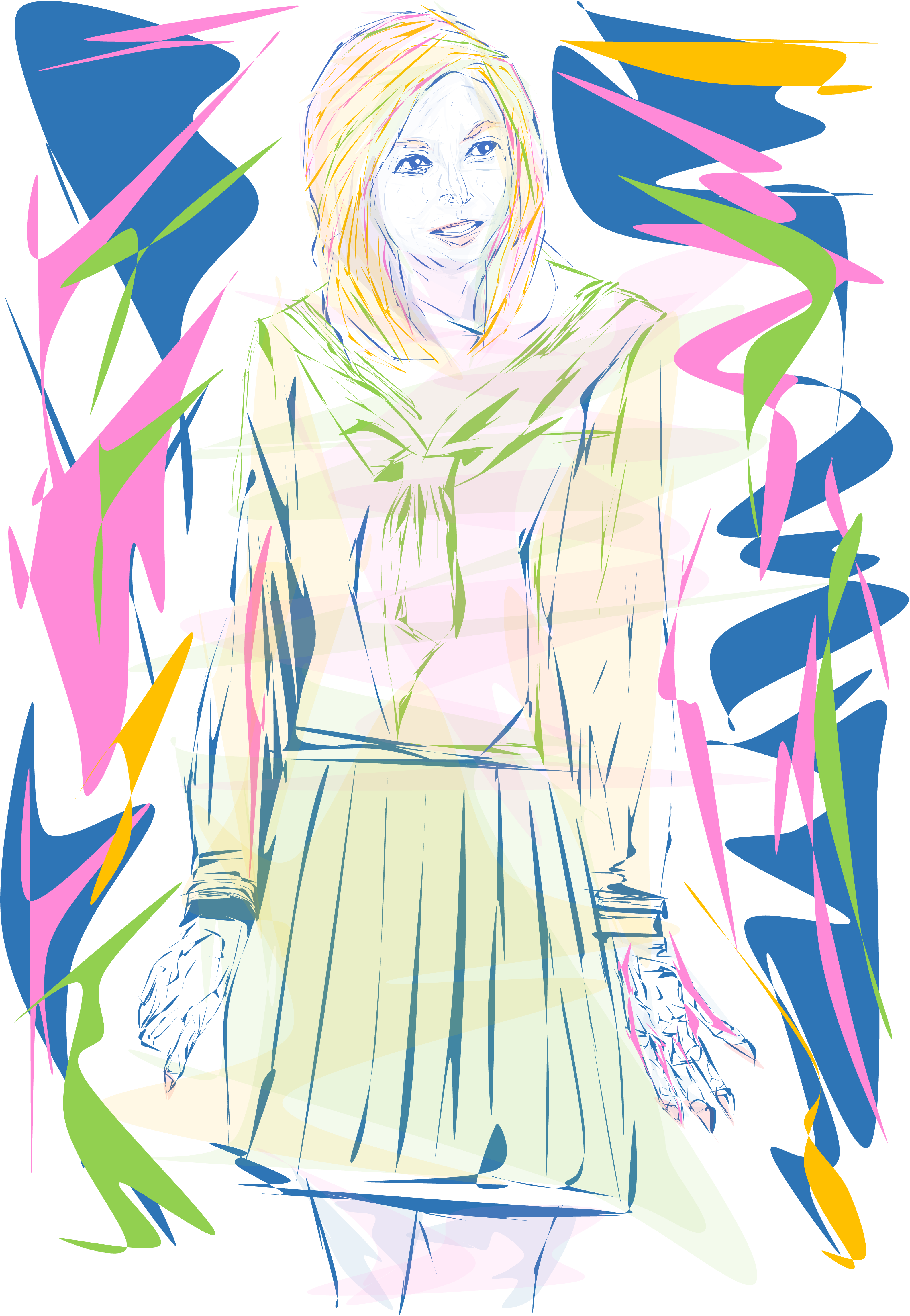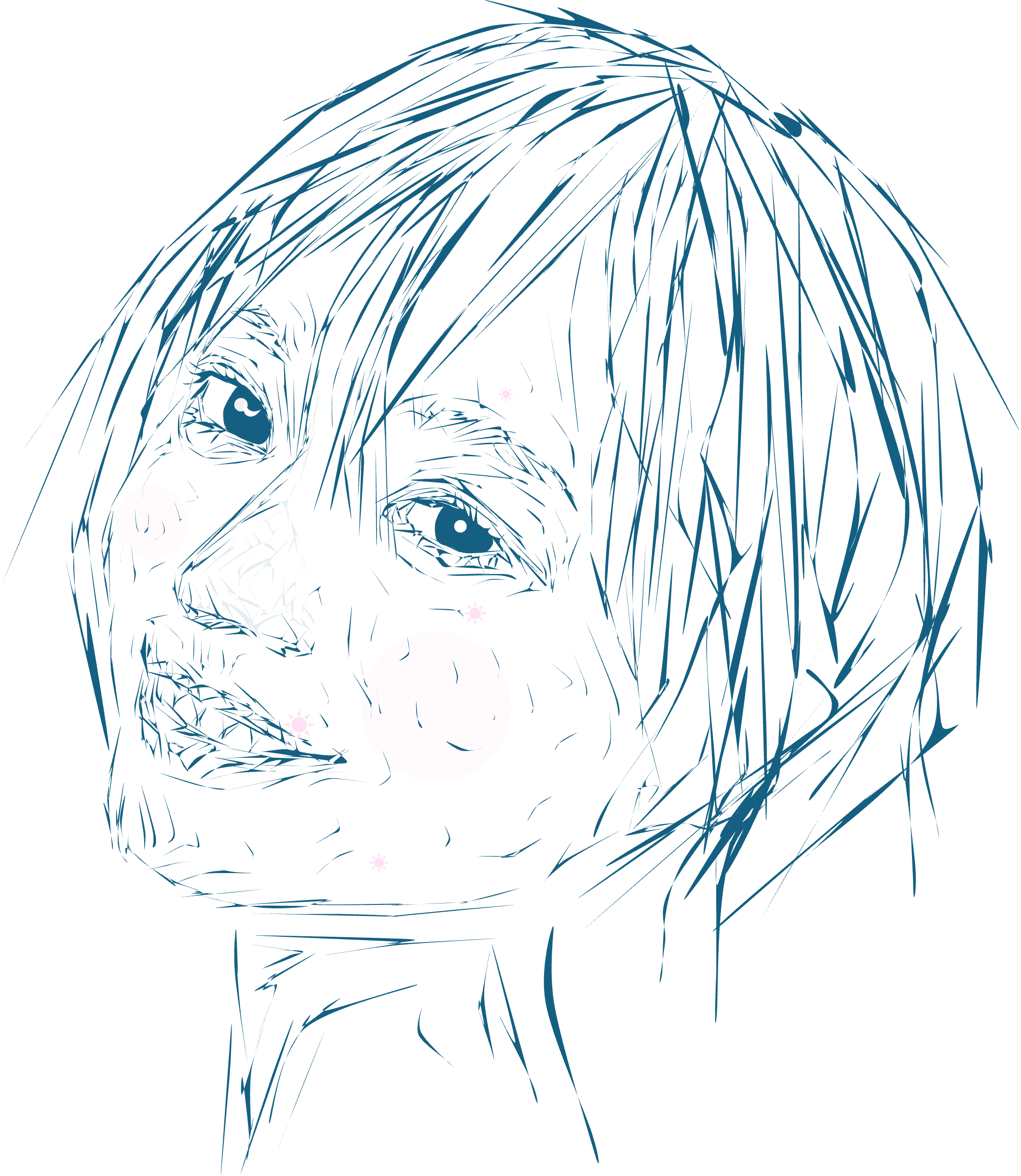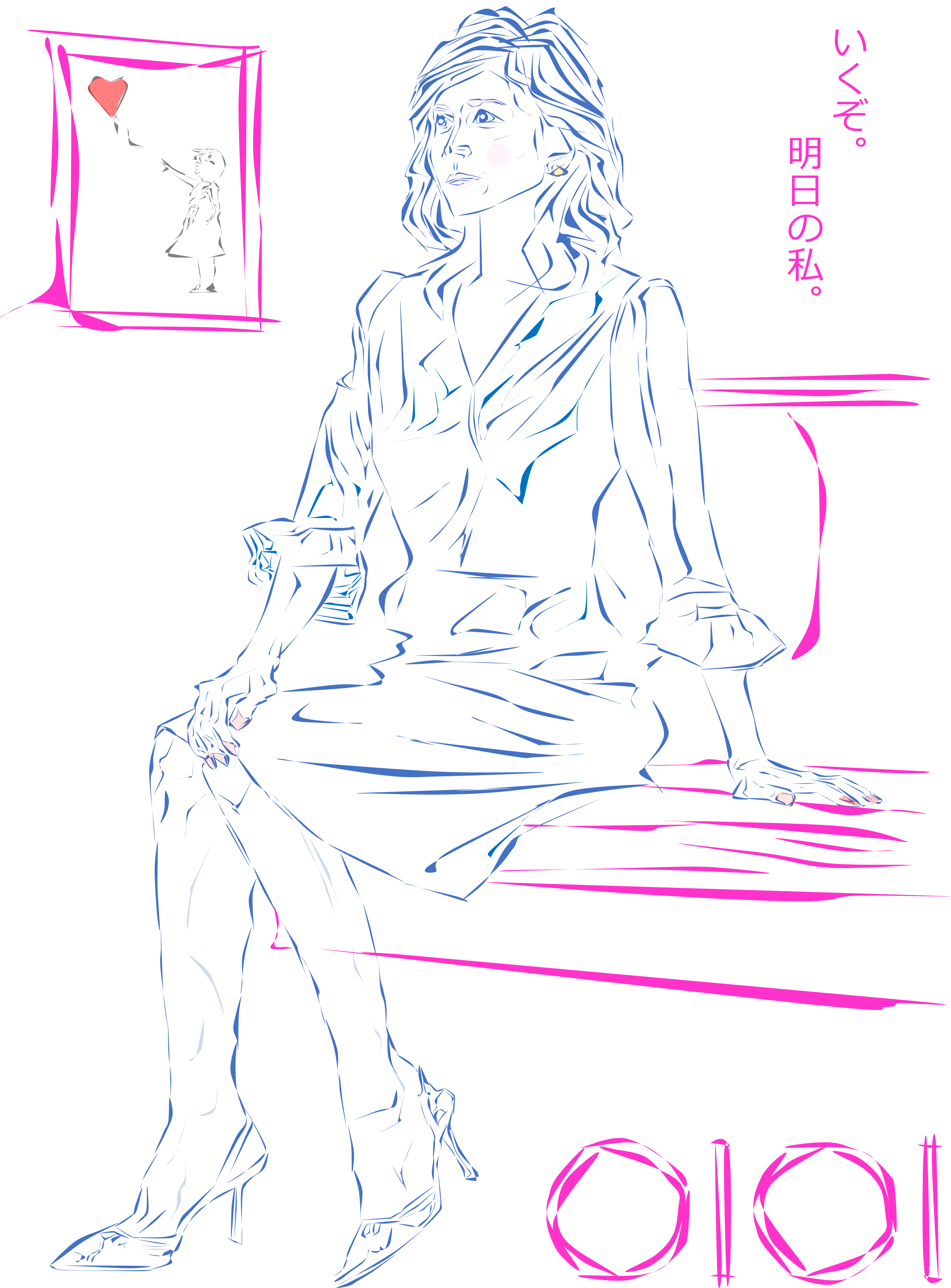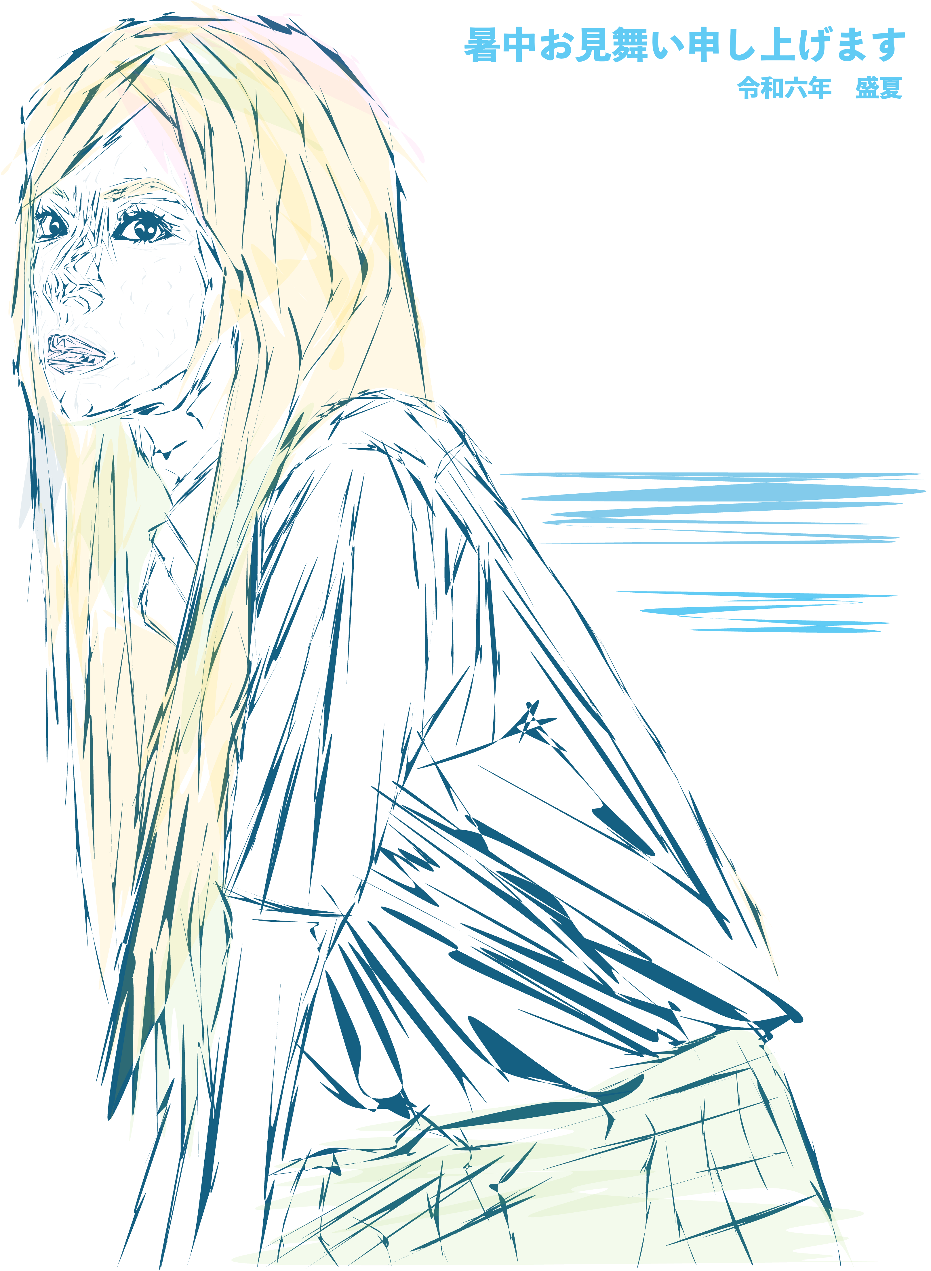 現実的な輪郭線は黒系だが、私の輪郭線は青や赤が多い。色の塗りもパワポまかせだから、適当。現実的でない色で描く。知らず知らずのうちに、アンリ・マティス的である。