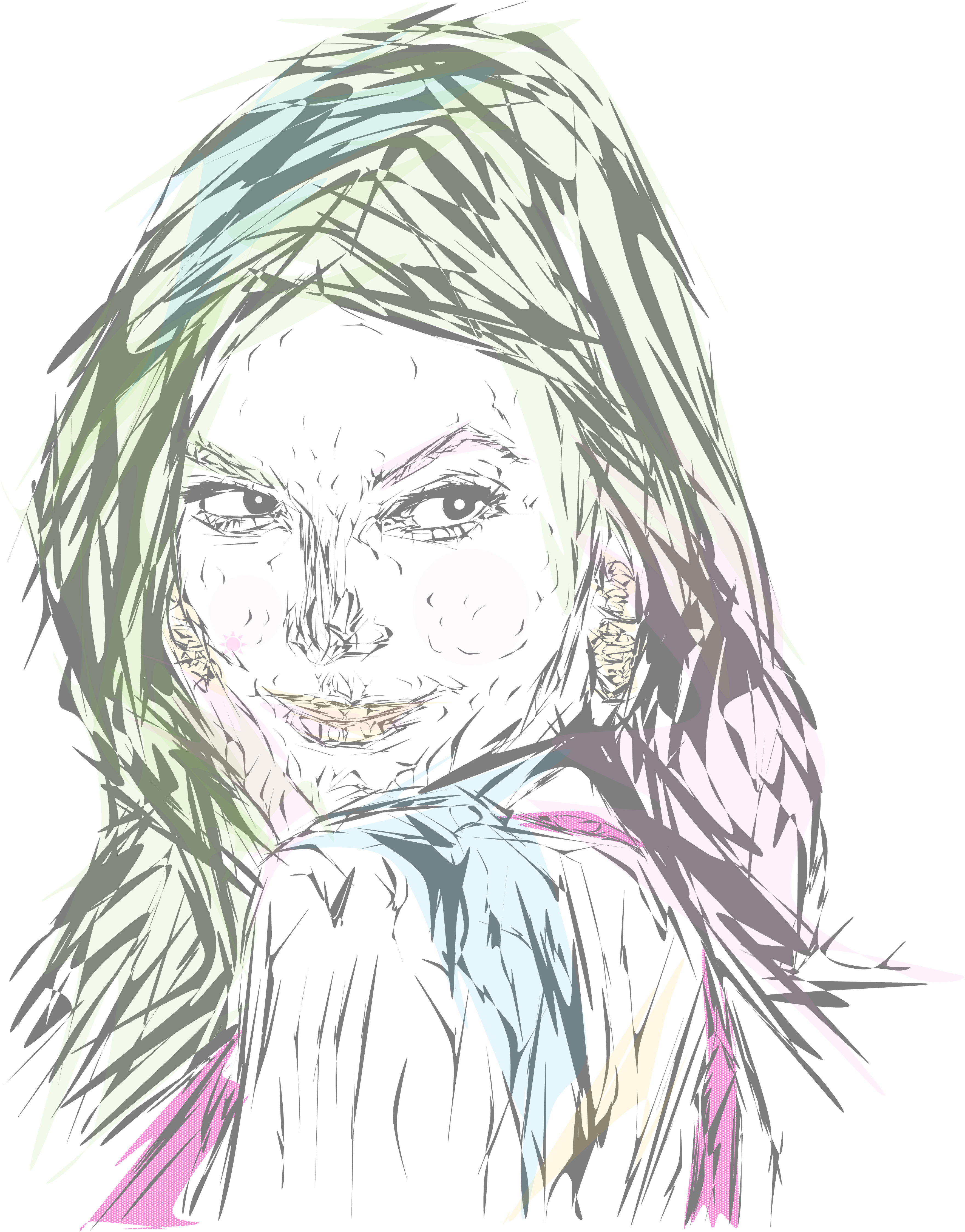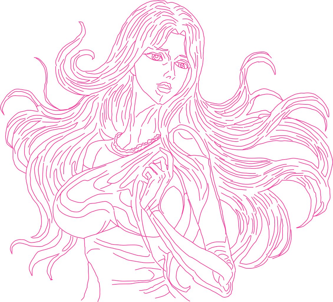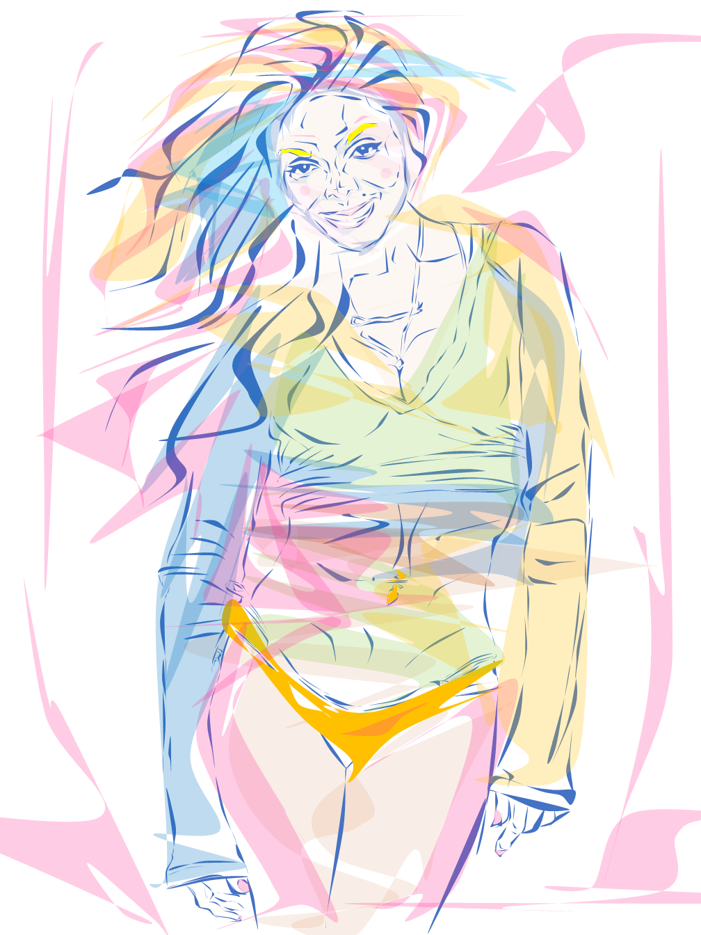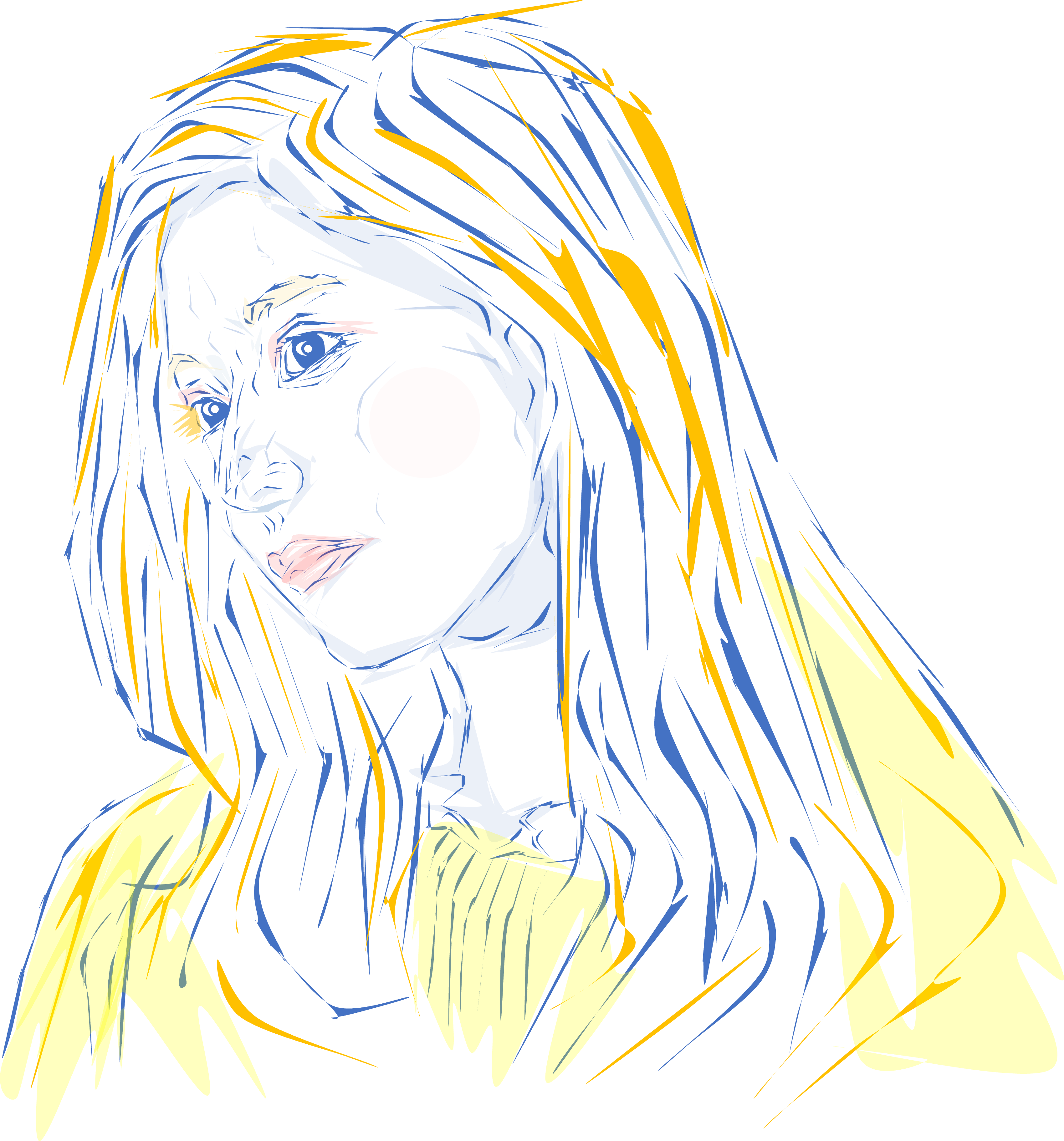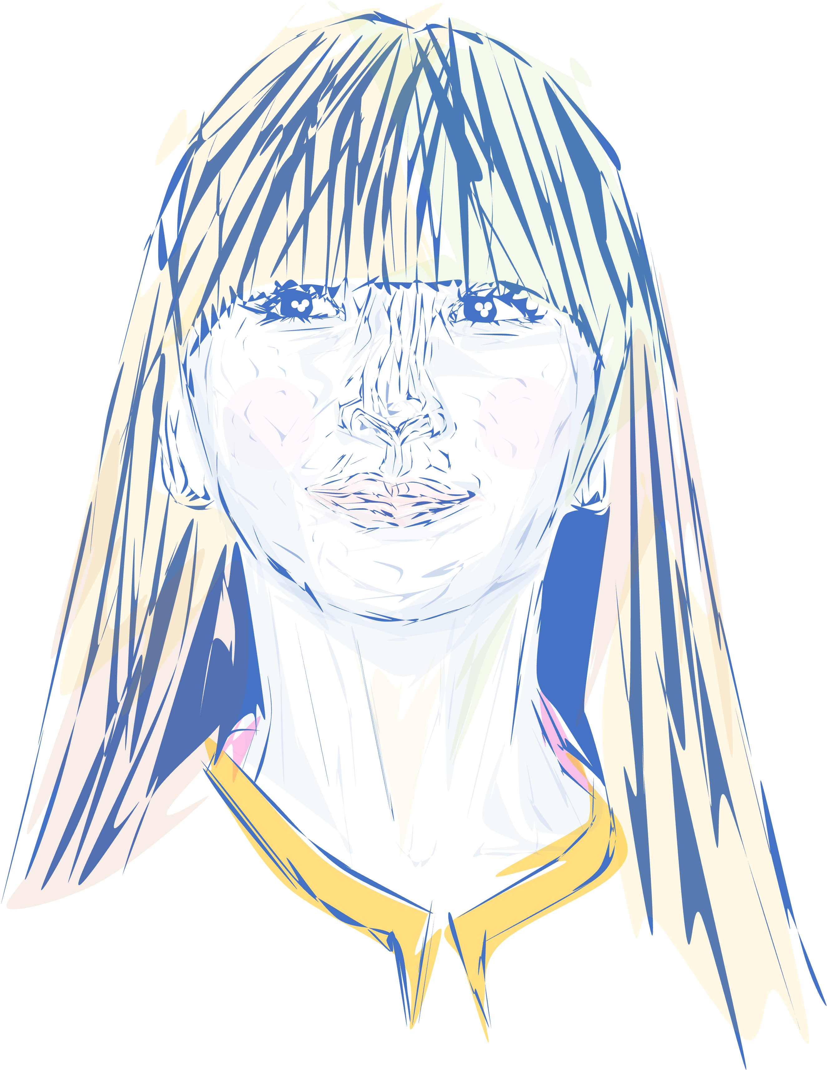 現実的な輪郭線は黒系だが、私の輪郭線は青や赤が多い。色の塗りもパワポまかせだから、適当。現実的でない色で描く。知らず知らずのうちに、アンリ・マティス的である。