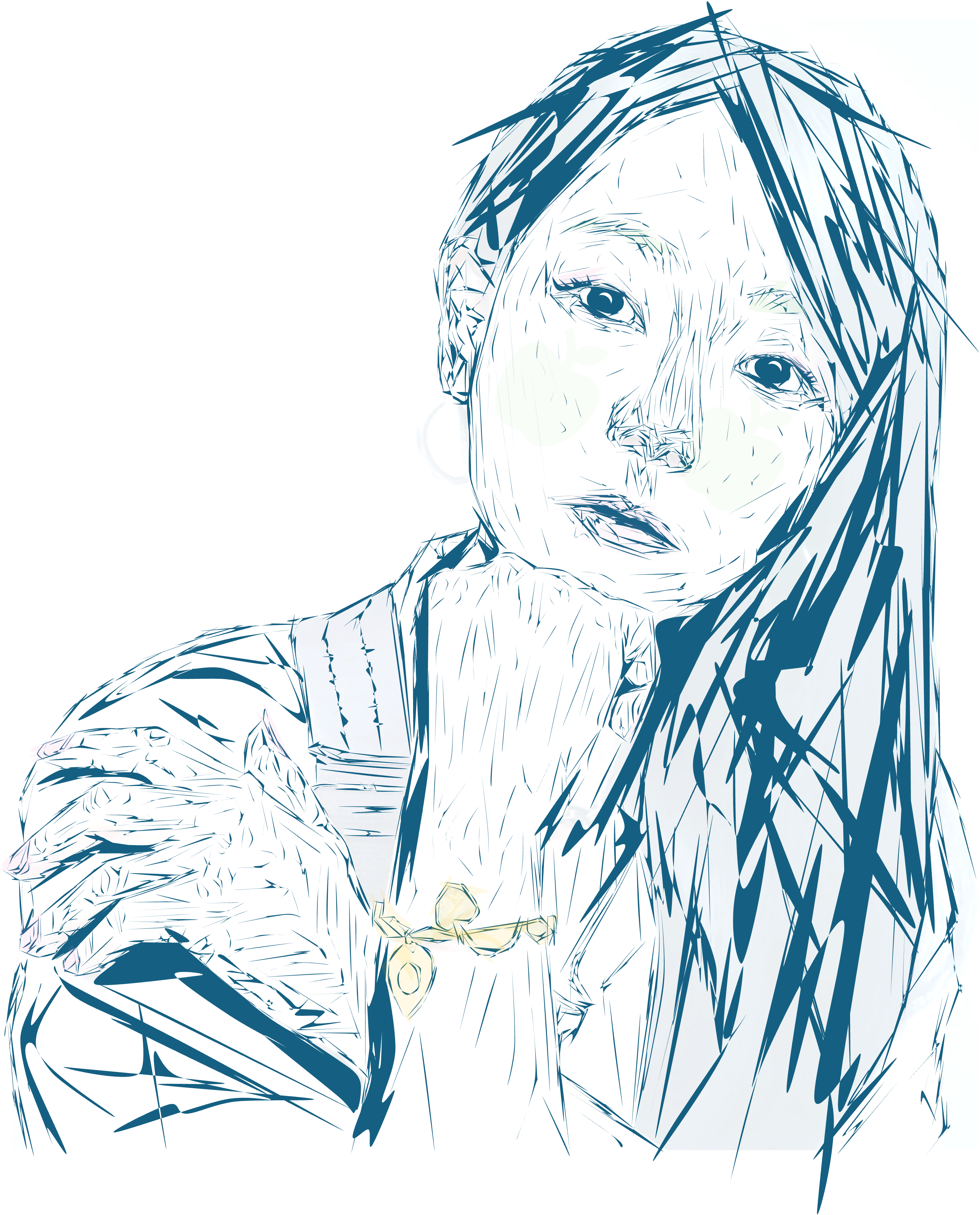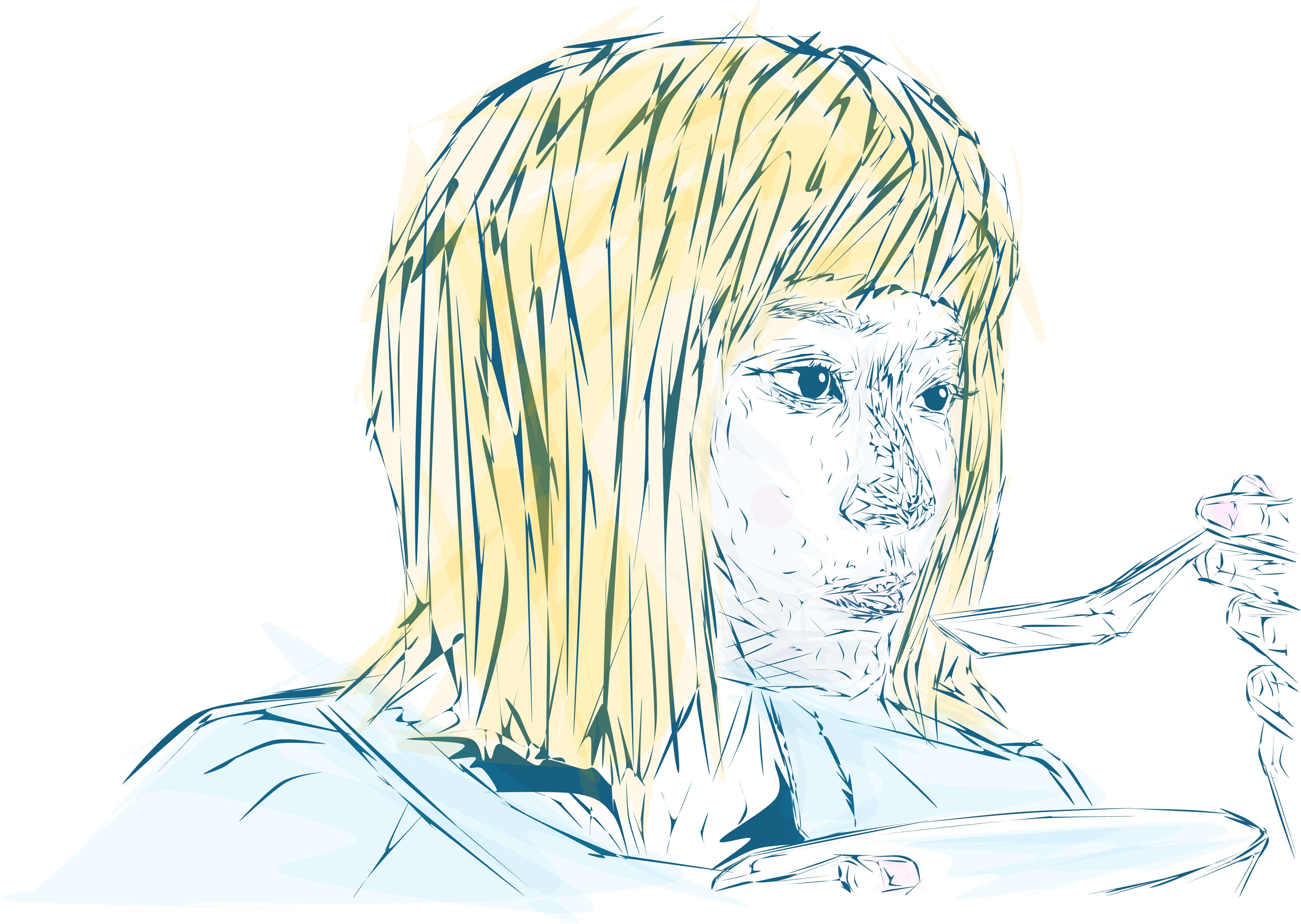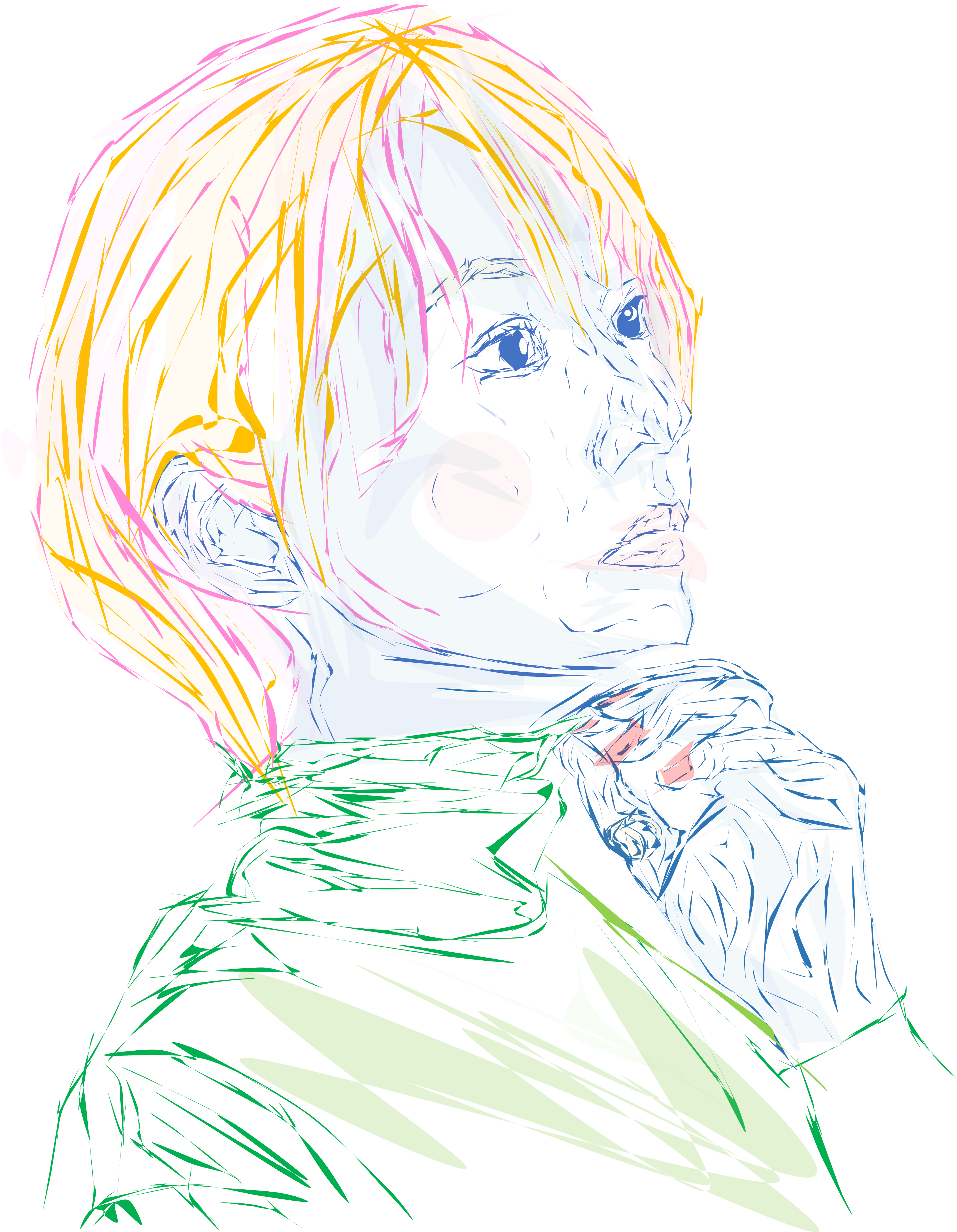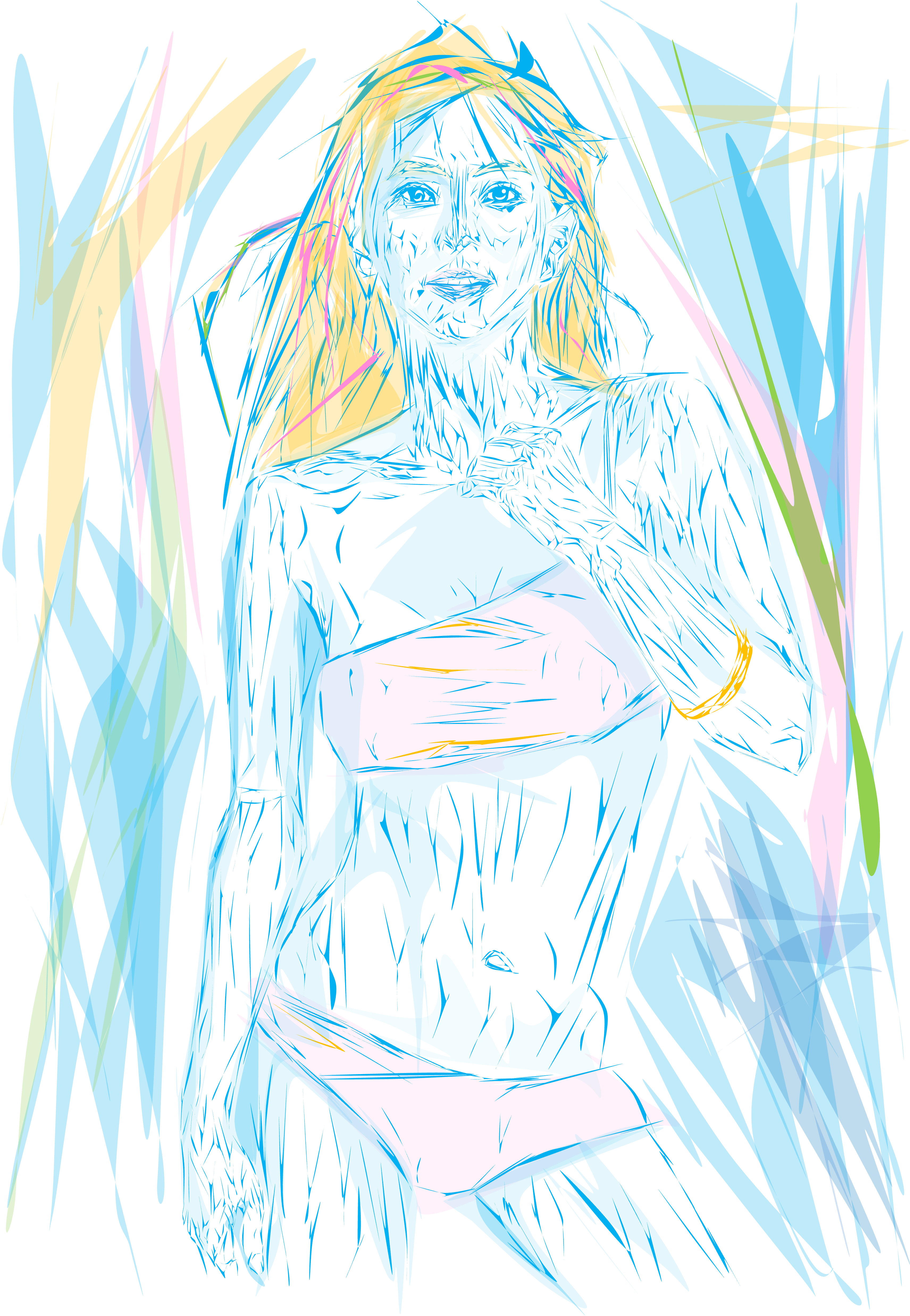 現実的な輪郭線は黒系だが、私の輪郭線は青や赤が多い。色の塗りもパワポまかせだから、適当。現実的でない色で描く。知らず知らずのうちに、アンリ・マティス的である。