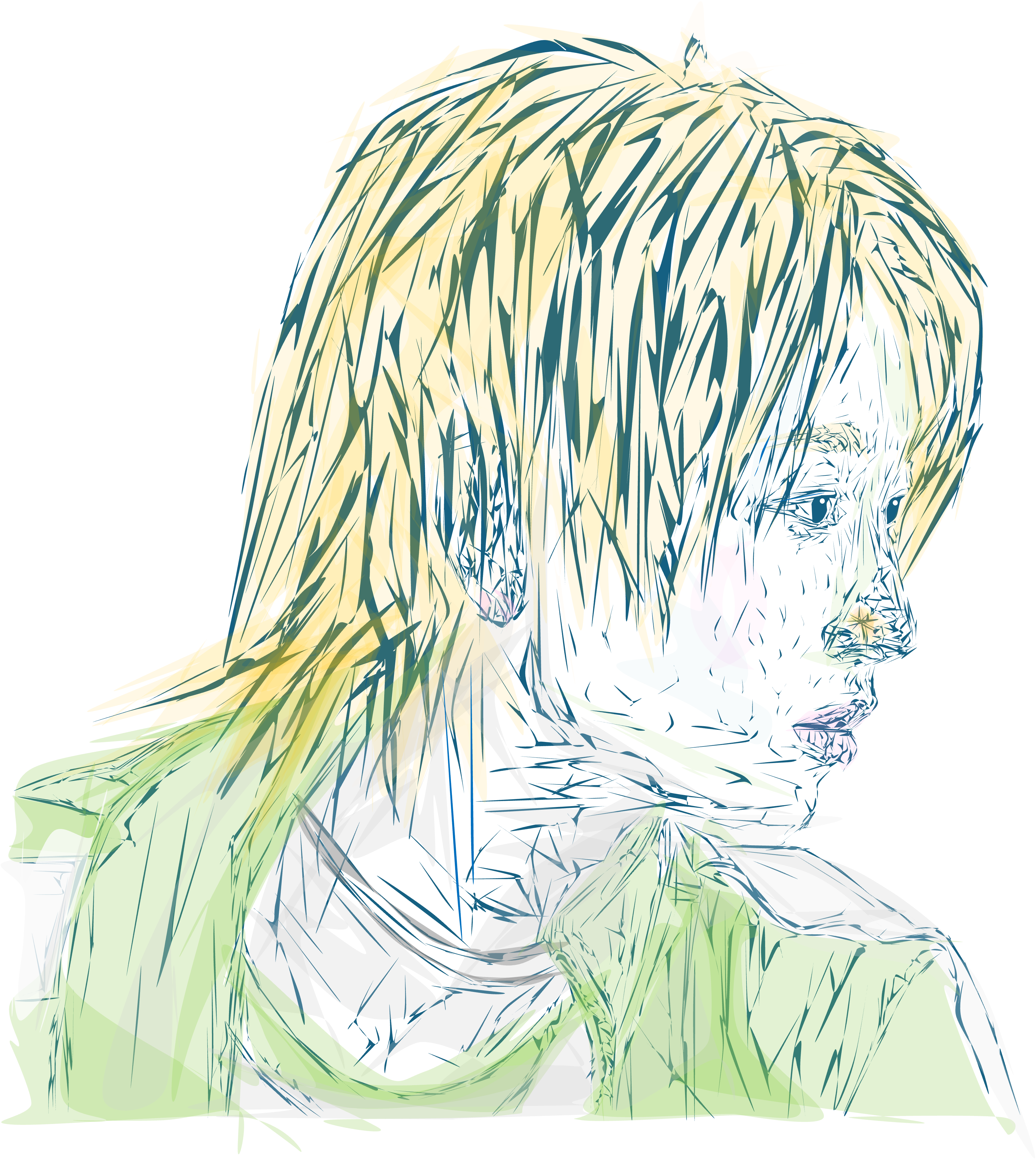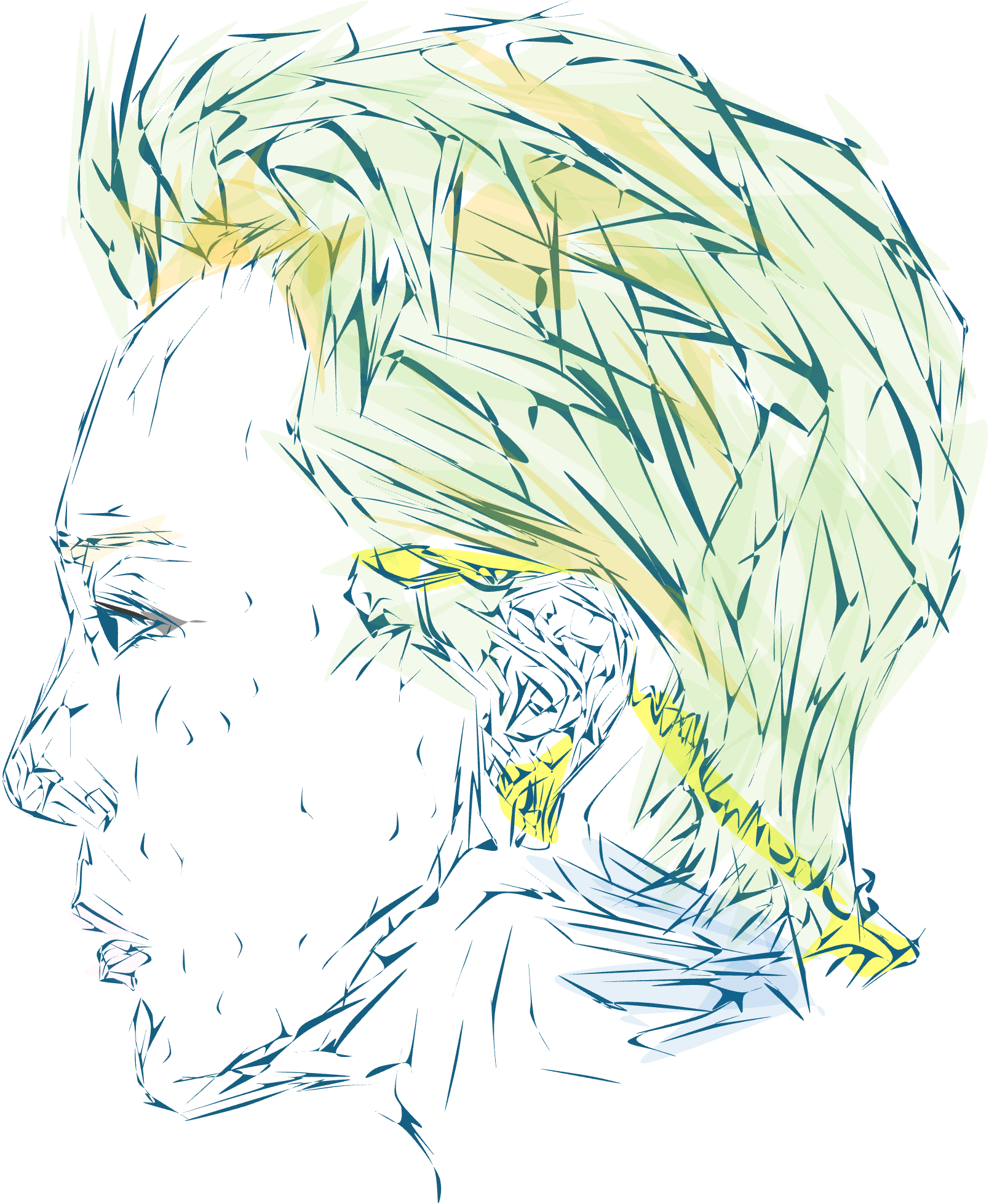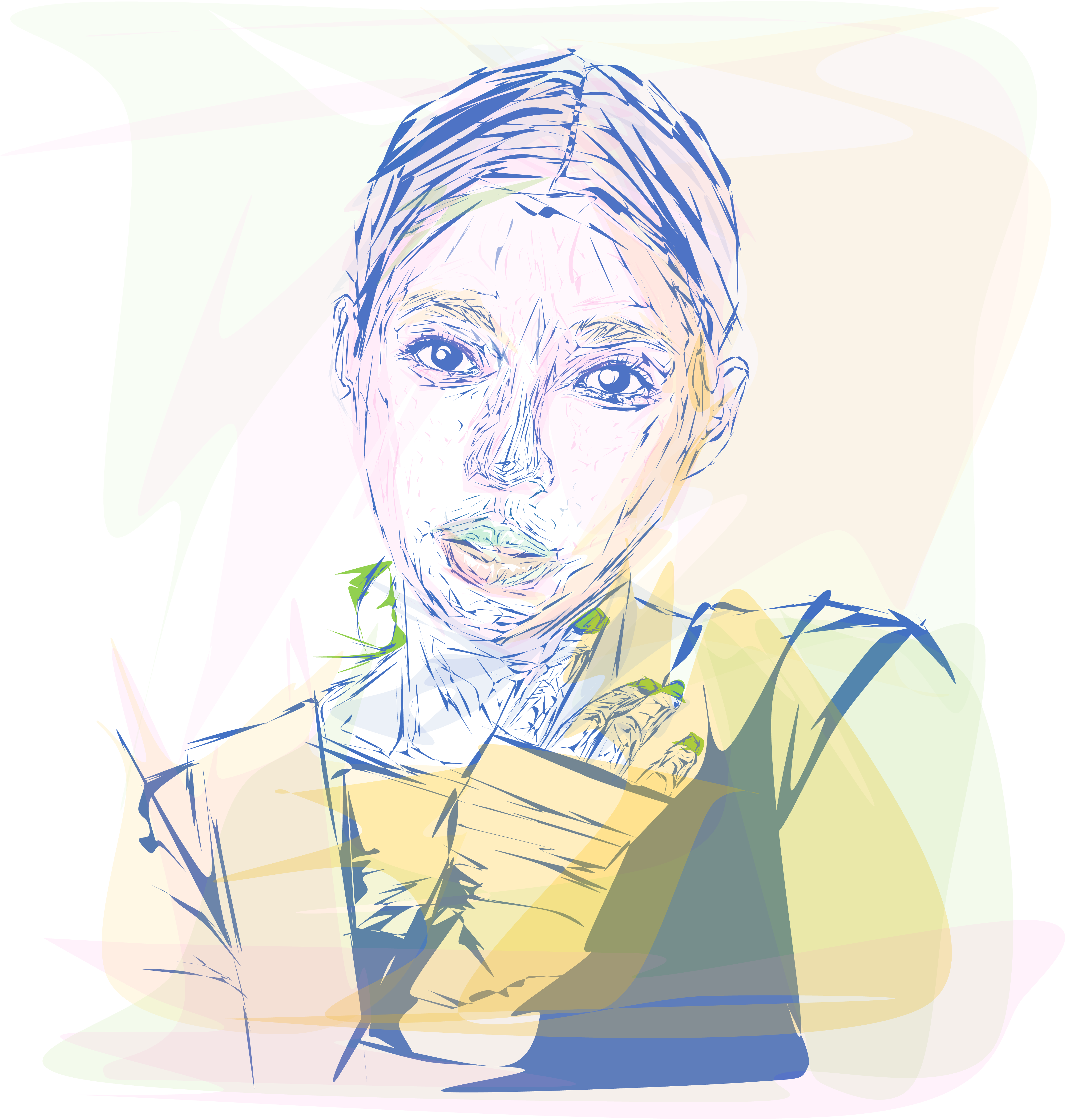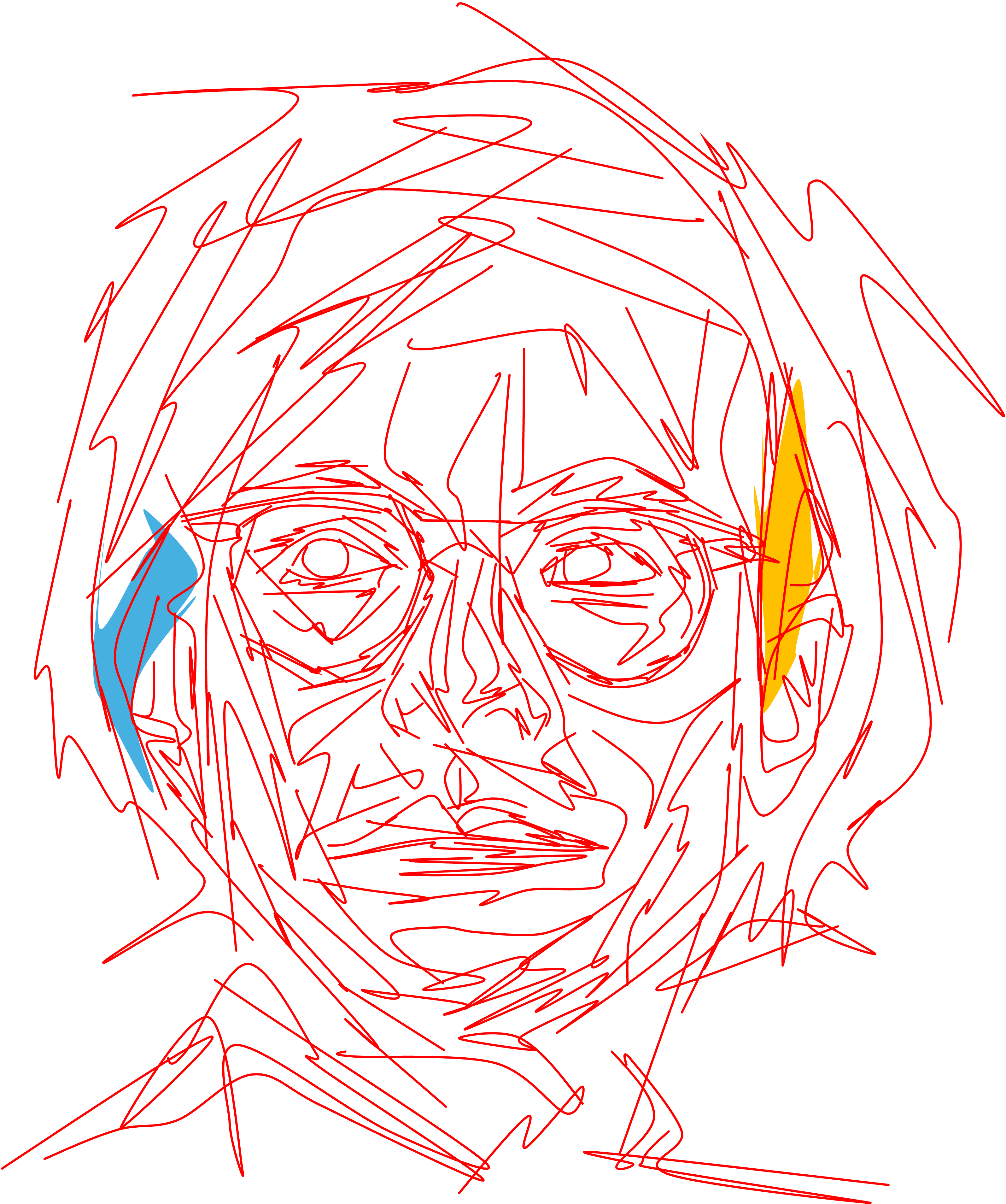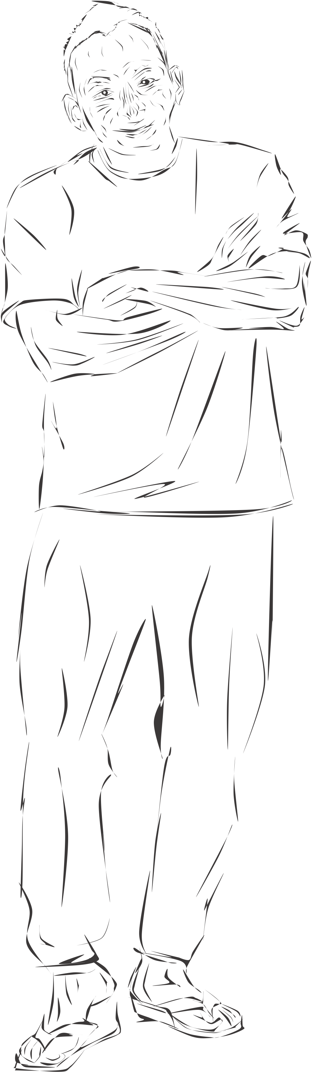 現実的な輪郭線は黒系だが、私の輪郭線は青や赤が多い。色の塗りもパワポまかせだから、適当。現実的でない色で描く。知らず知らずのうちに、アンリ・マティス的である。
