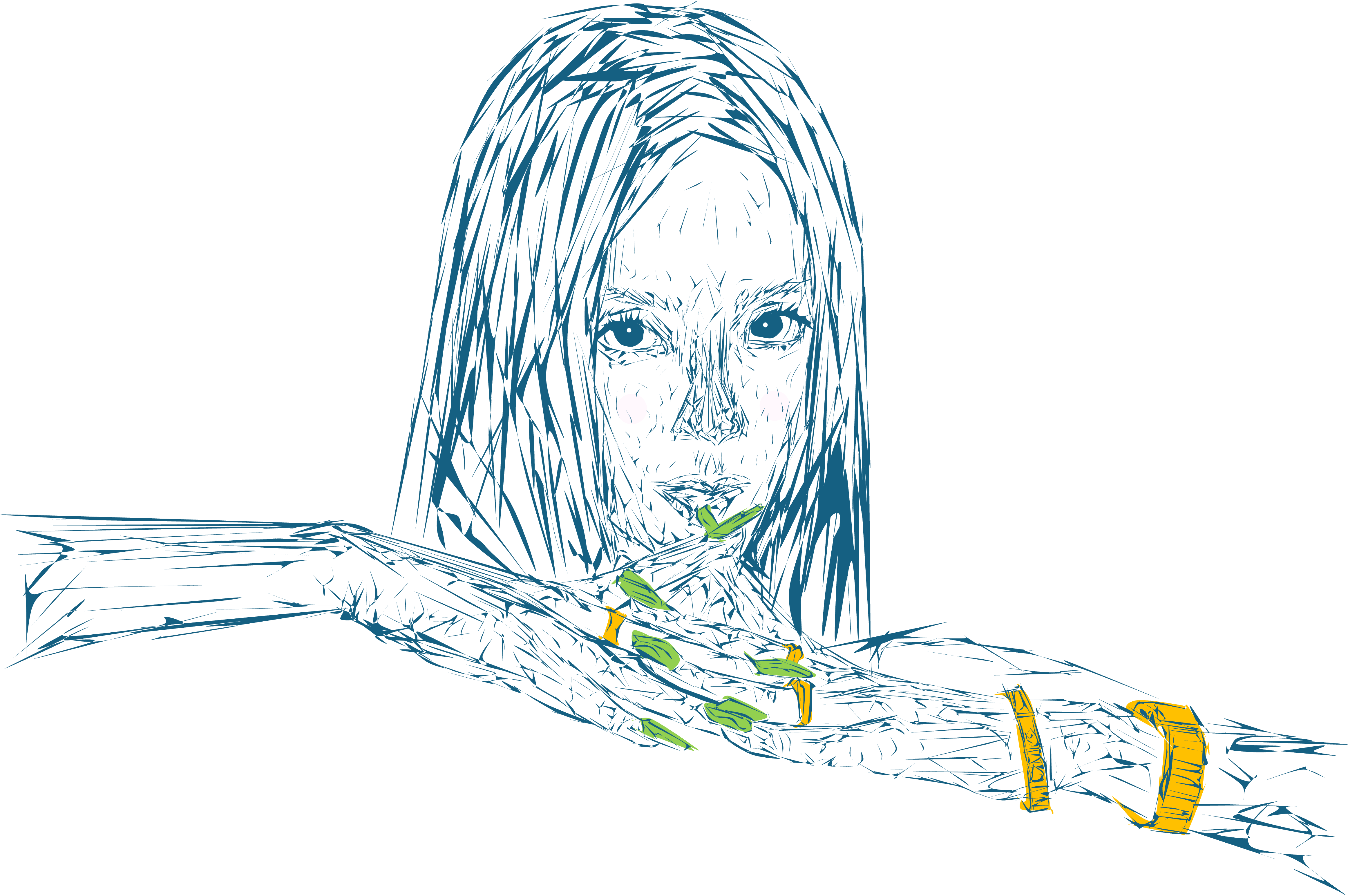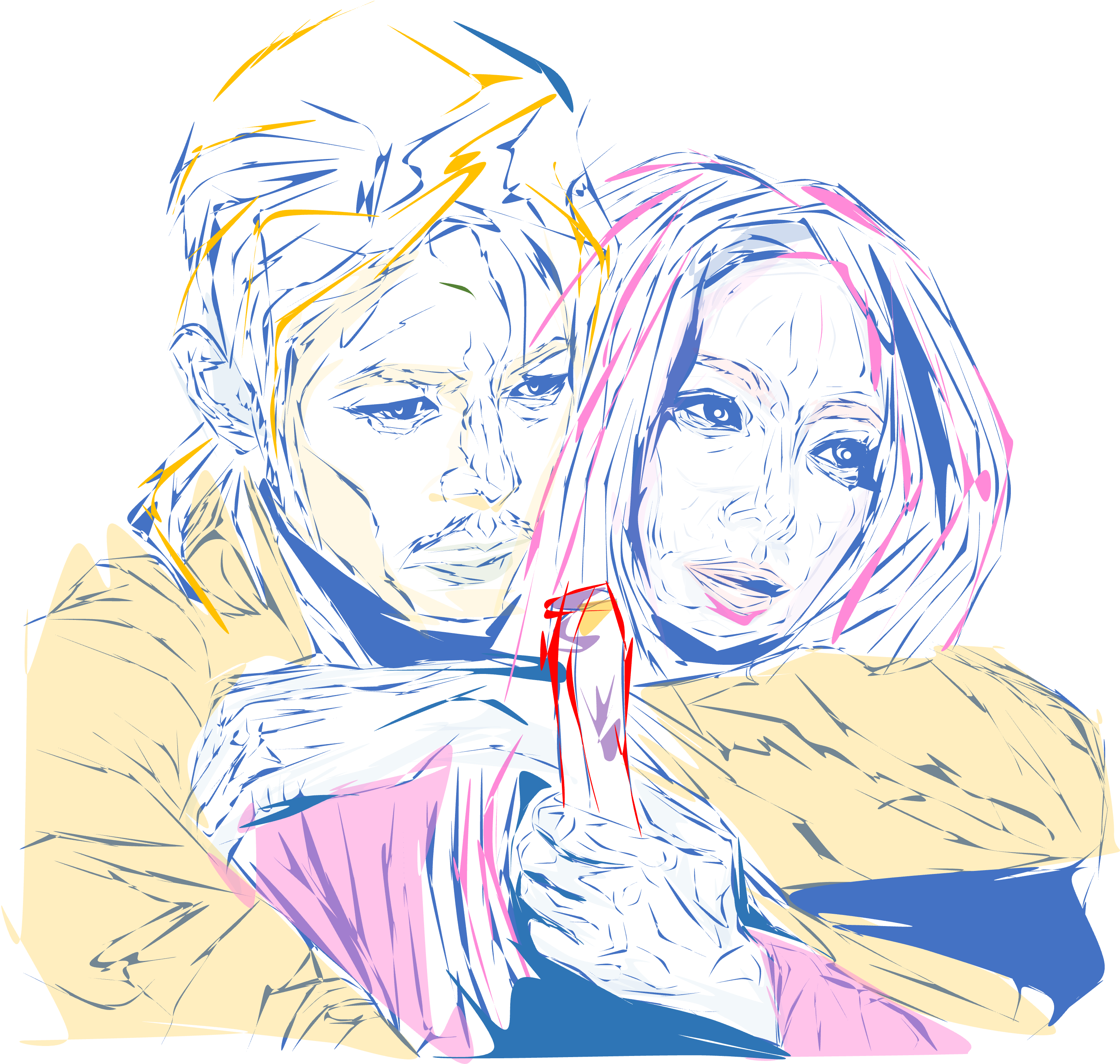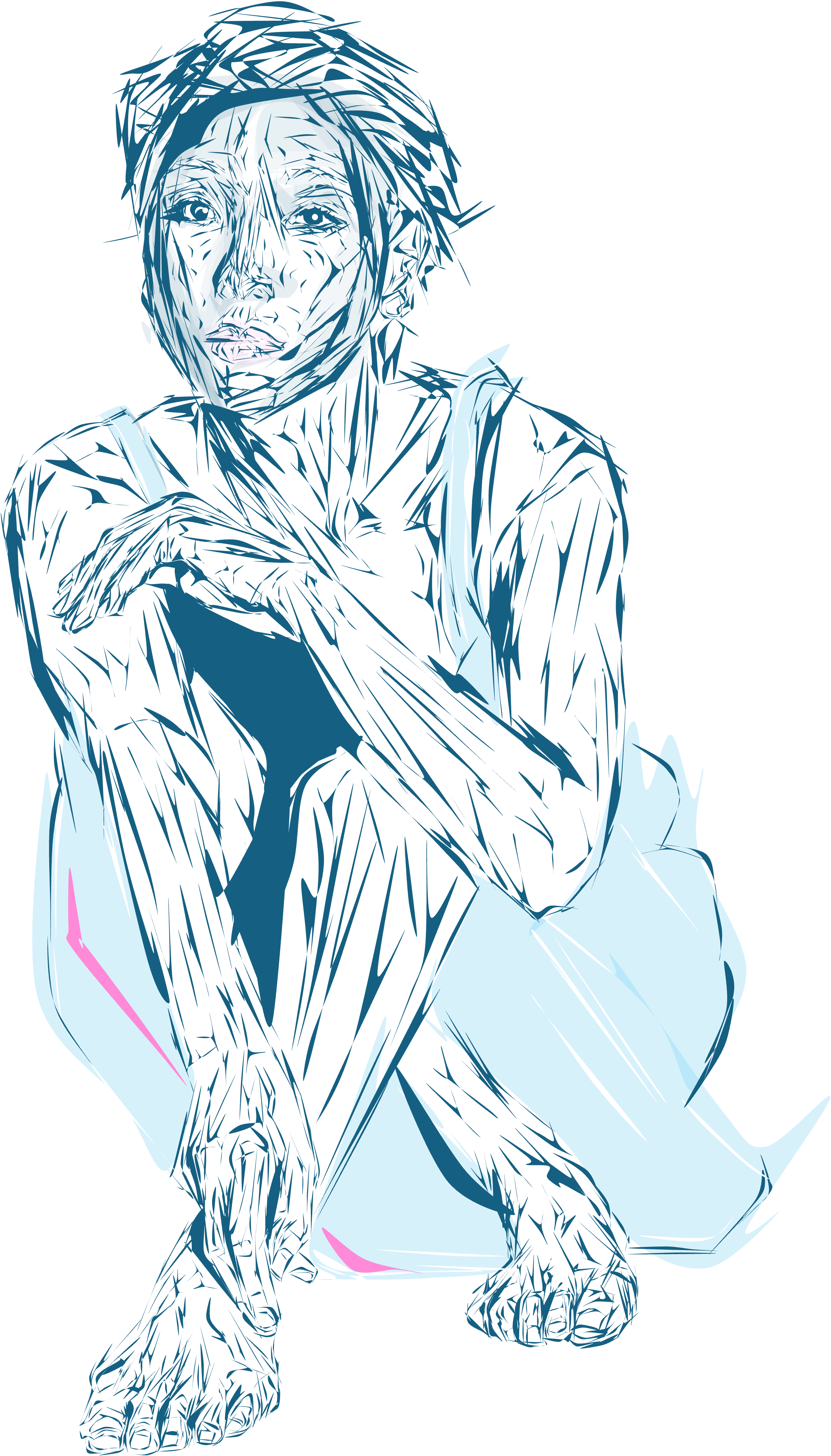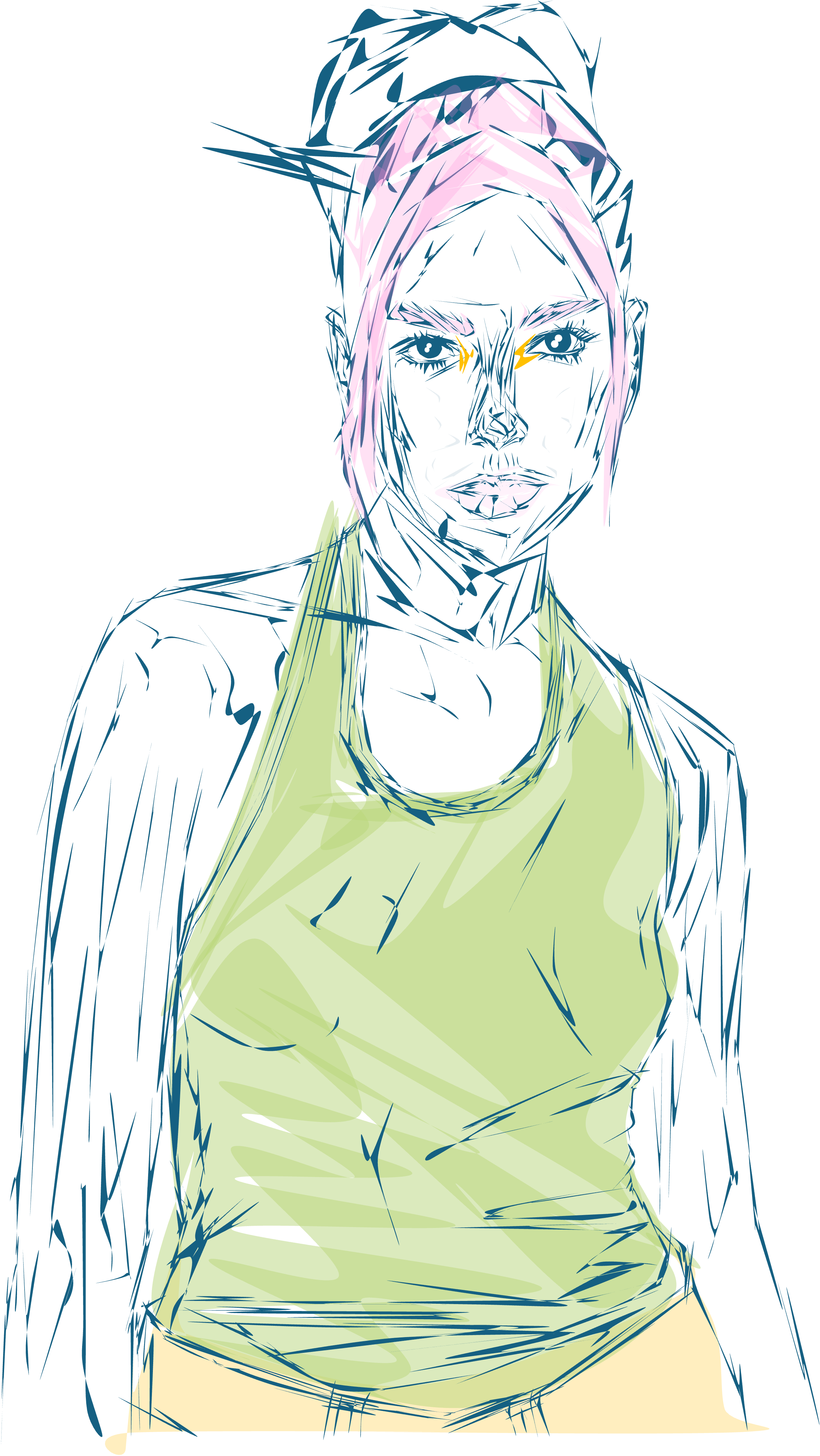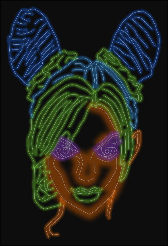 現実的な輪郭線は黒系だが、私の輪郭線は青や赤が多い。色の塗りもパワポまかせだから、適当。現実的でない色で描く。知らず知らずのうちに、アンリ・マティス的である。