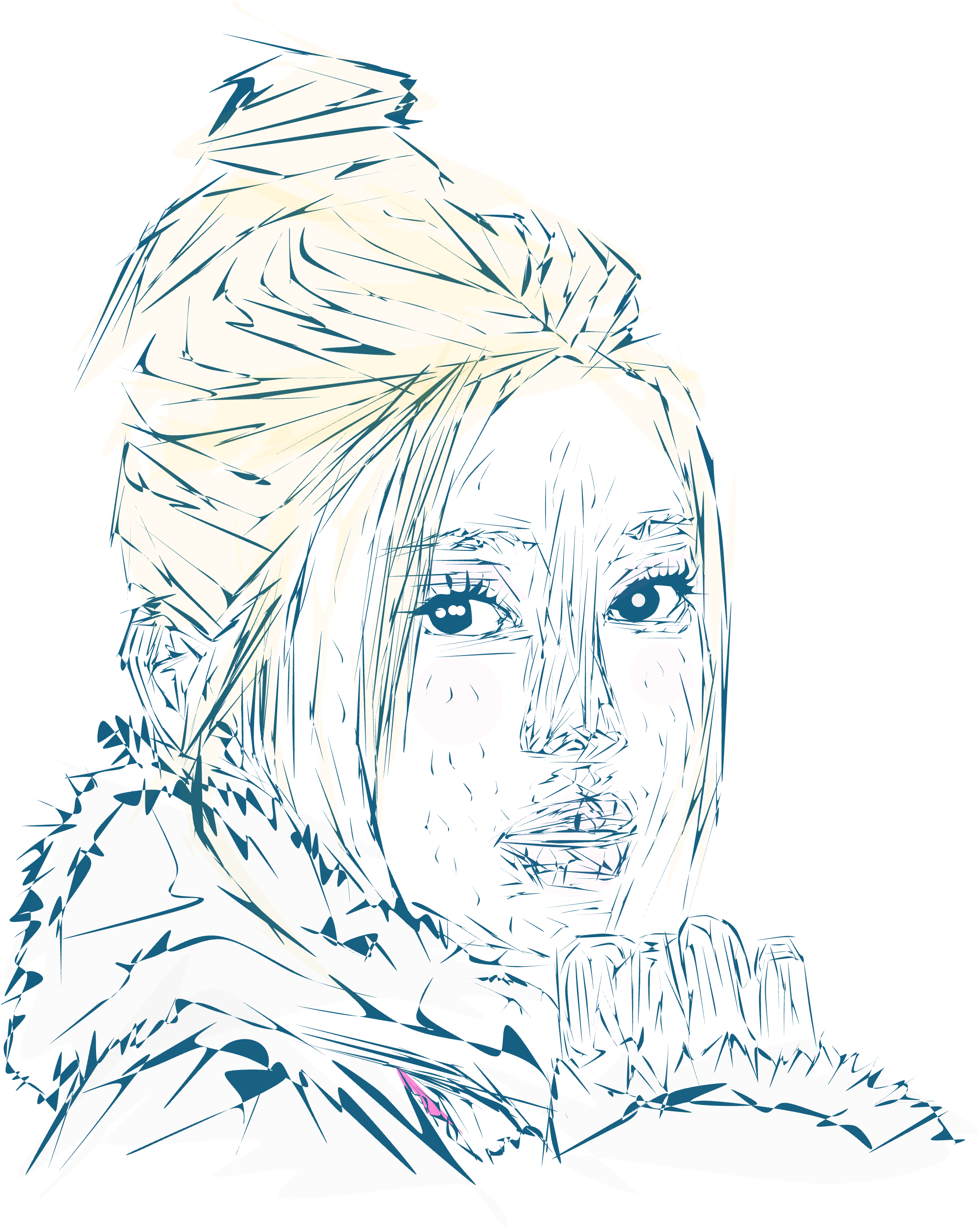 現実的な輪郭線は黒系だが、私の輪郭線は青や赤が多い。色の塗りもパワポまかせだから、適当。現実的でない色で描く。知らず知らずのうちに、アンリ・マティス的である。