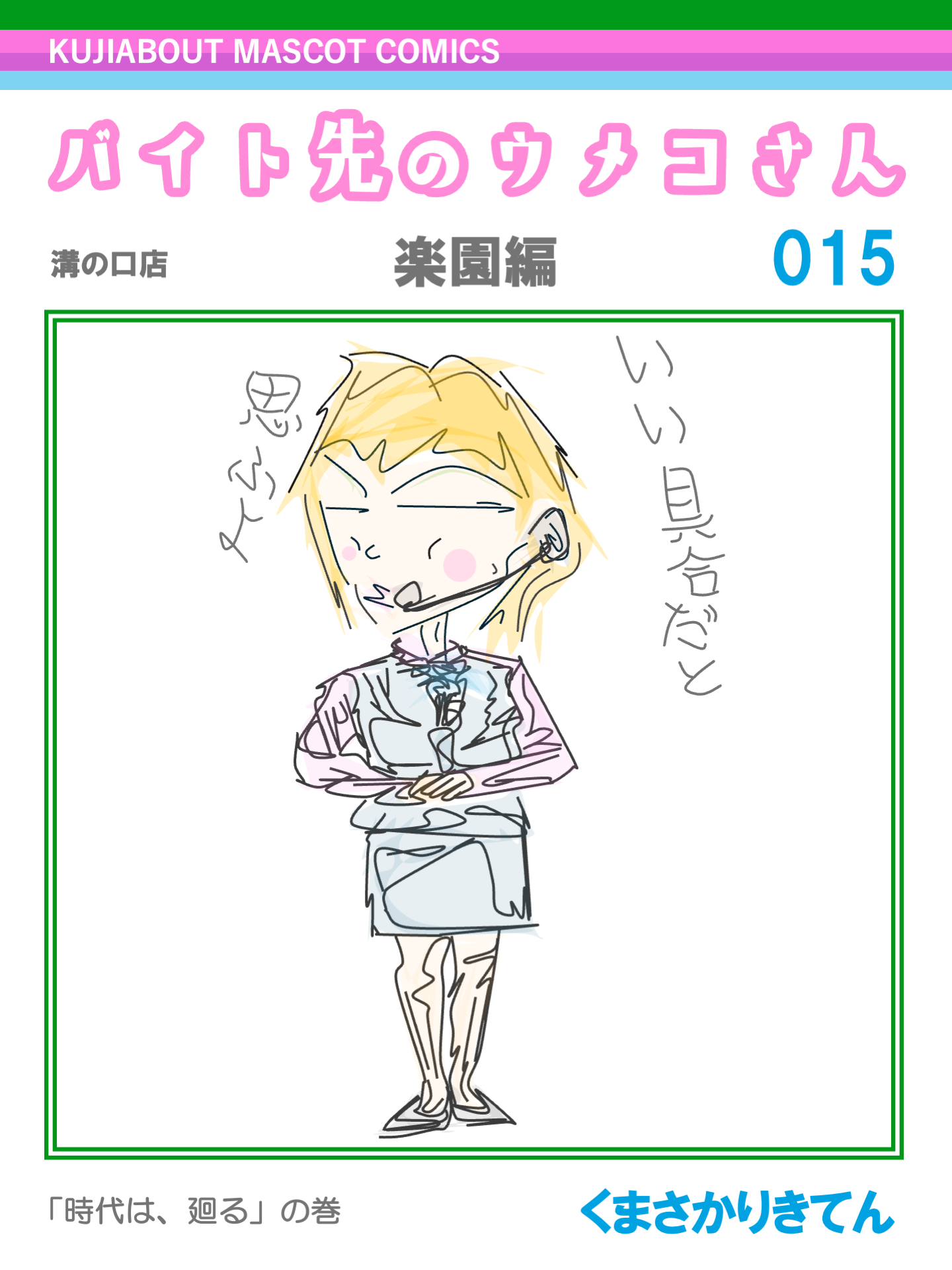 舞台がバイトの現場だけに、ウメコの服装は、バイト先の制服にしようということで、これはすぐに決定しました。 また、ウメコのファッションをバイト先の制服としたのは、あまたある企業からタイアップを持ちかけられたら「ラッキー」という企みでもあります。